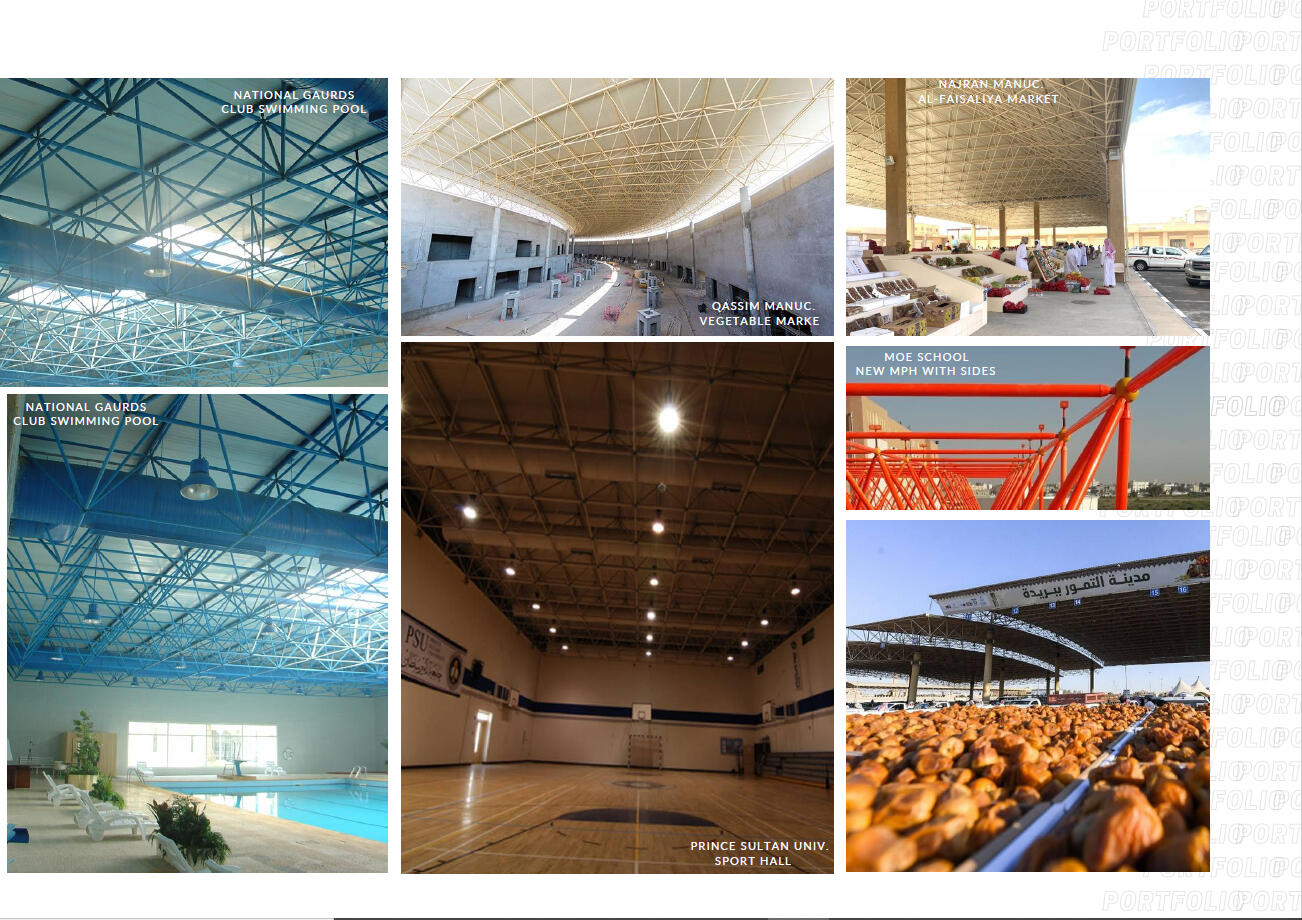 Supervised the design, supply, and installation of the steel space frame roof 2145sqm area. Client: NCE co. Ref: Eng. Osman Al-Saif engineering consult. - 0114648899